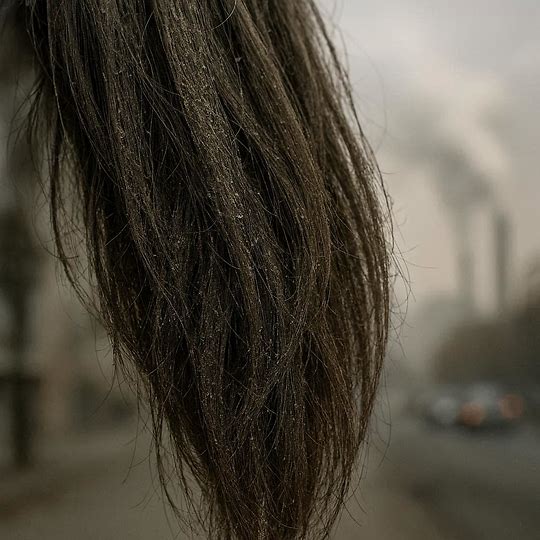 - ذرات معلق هوا، به خصوص آنهایی که دارای بار الکتریکی هستند، به راحتی به سطح مو و پوست سر میچسبند. علاوه بر ذرات، ترکیبات آلی فرار و فلزات سنگین نیز میتوانند بر روی ساقه مو و پوست سر رسوب کنند. این رسوبات به مرور زمان، به ویژه در افرادی که به طور منظم موهای خود را نمیشویند، تجمع مییابند و یک لایه نازک و نامرئی را بر روی مو ایجاد میکنند.